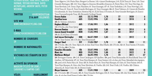 Autres sports Autres sports Team BikeExchange-Jayco ANALYSE POINTS FORTS Le nouveau maillot de BikeExchange-Jayco rappelle celui de Gerolsteiner. On n'a pas vraiment de bons souvenirs de l'équipe de Davide Rebellin et Stefan Schumacher. L'arrivée de Dylan Groenewegen constitue la principale nouvelle. Ce transfert, réalisé sur le tard, est un plus pour toutes les parties. Le sprinteur avait disparu à l'arrière-plan chez …