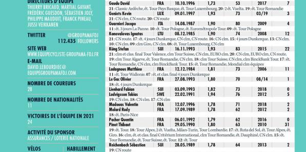 Autres sports Autres sports Groupama-FDJ ANALYSE POINTS FORTS Quel timing dans le transfert de Michael Storer ! L' Aussie avait à peine signé qu'il enlevait deux étapes de la Vuelta et enfilait le maillot de la montagne. Le Team DSM a avalé son café de travers. Pourtant, la maison n'est pas vraiment une spécialiste des transferts. L'équipe Groupama-FDJ forme ses …