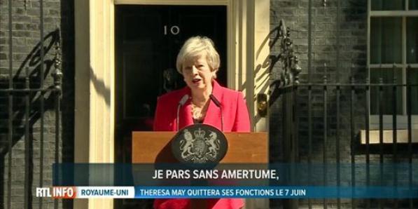 Vidéo | Belgique Vidéo | Belgique Theresa May annonce sa démission les larmes aux yeux La Première ministre britannique a annoncé sa démission pour le 7 juin prochain. Elle quitte son poste sans avoir pu faire appliquer le moindre accord sur le Brexit, et laisse ce délicat chantier à son successeur...