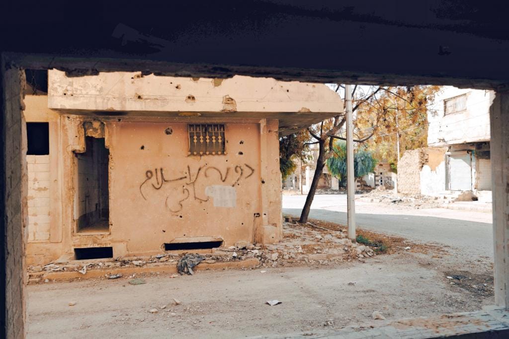 Car Palmyre fut, bien malgré elle, l’un des nombreux points chauds de la guerre civile syrienne. Et son passé de ville convoitée et disputée a fini par la rattraper. Dans un quartier encore ravagé de la ville, un groupe d’hommes, revenus il y a quelques mois, tente de rebâtir ce qui peut l’être. Ici, les traces de la guerre sont partout: peintures de l’Etat islamique, biens ayant appartenu aux milices iraniennes et aux forces russes alliées de Bachar al-Assad saturent encore les lieux.