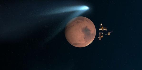 Sciences Sciences La comète Siding Spring "frôle" Mars La comète Siding Spring a "frôlé" dimanche la planète Mars, à une distance de près de 136.000 km et à la vitesse de 202.000 km/h, un événement qui ne se produit qu'une fois par million d'années, a annoncé l'Agence spatiale européenne (ESA).